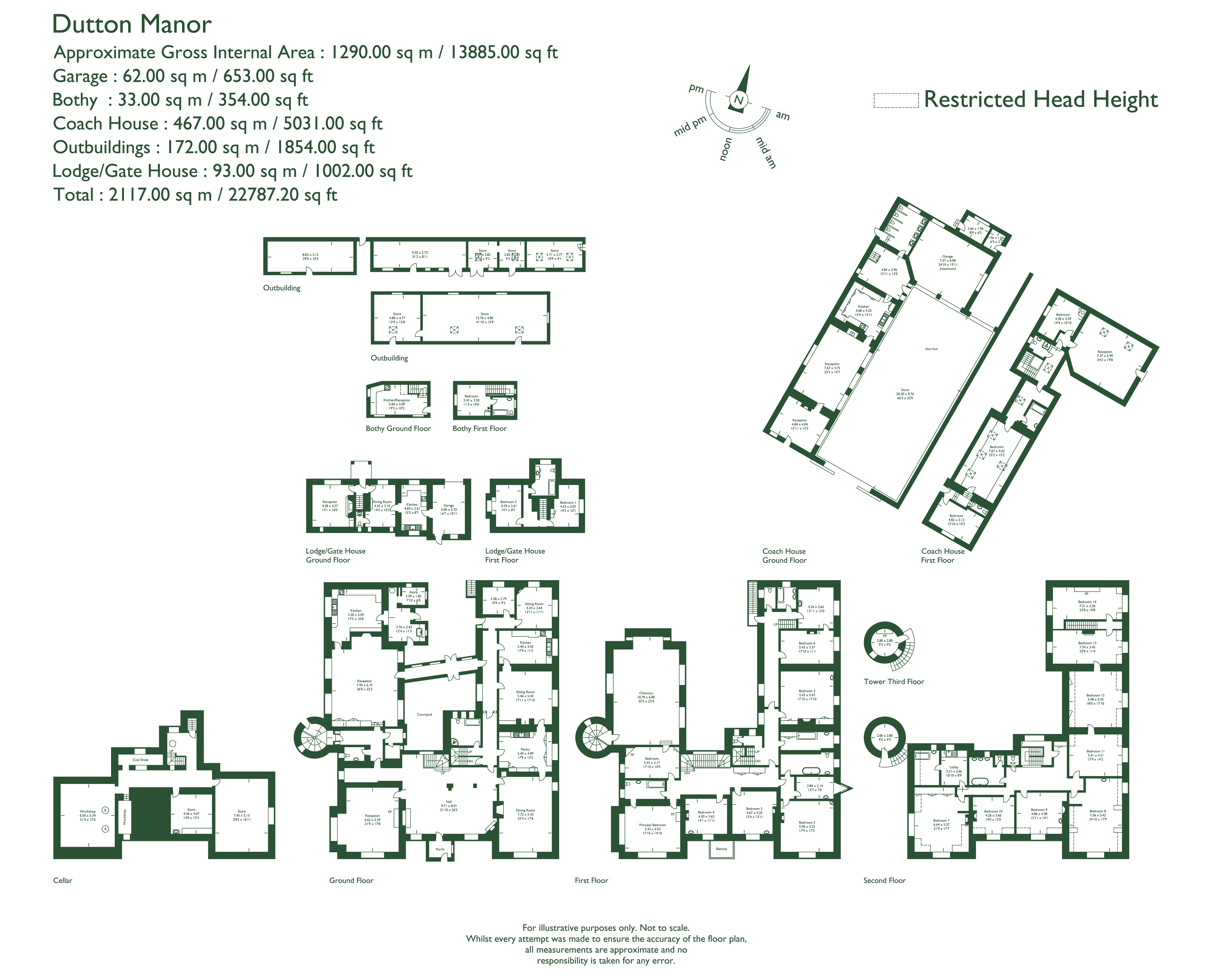 Additional workshops, sheds, log stores, and coal bunkers extend the estate’s practical outbuildings to approximately 1,850 sq ft, complementing the three cellar areas within the main house.