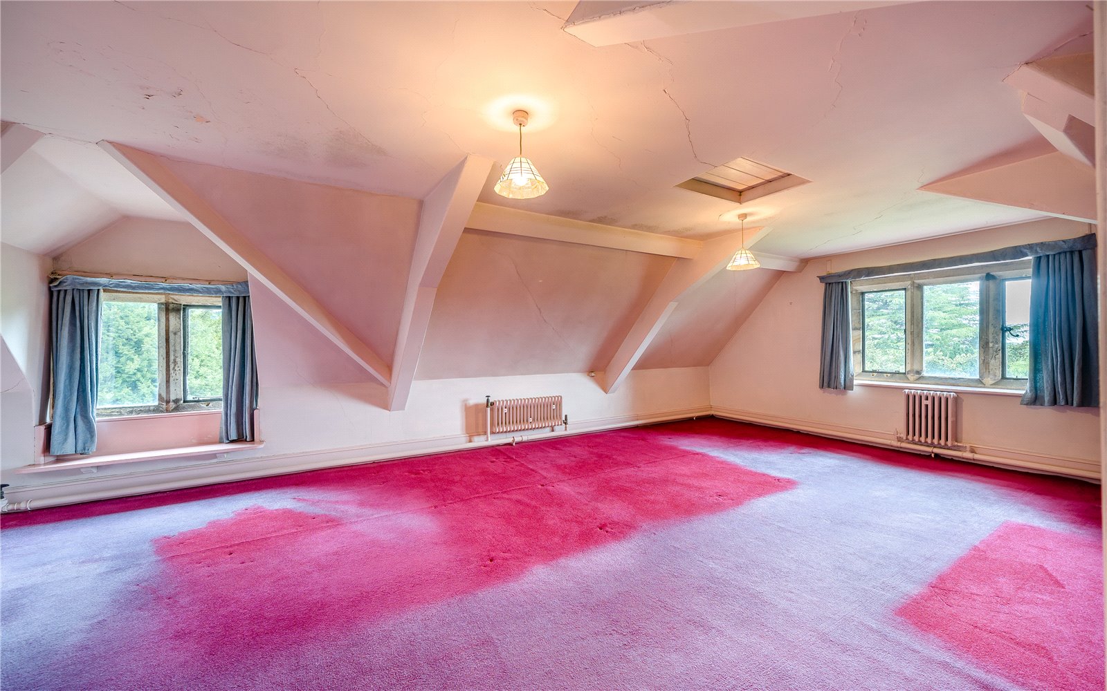 • The Coach House: Formerly stabling and chauffeur’s accommodation, this substantial building has been partially converted into a residential unit comprising two reception rooms, kitchen, three bedrooms, and further reception room with Juliet balcony. Adjoining garage facilities offer further potential subject to consents.